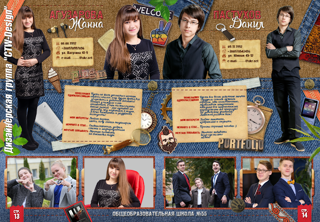 Выпускная фотокнига для старших классов - "Мир джинсы". Макет №19/859ВАСШ.