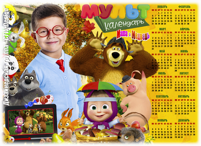 Многослойные горизонтальные календари с мультфильмами в PSD.
